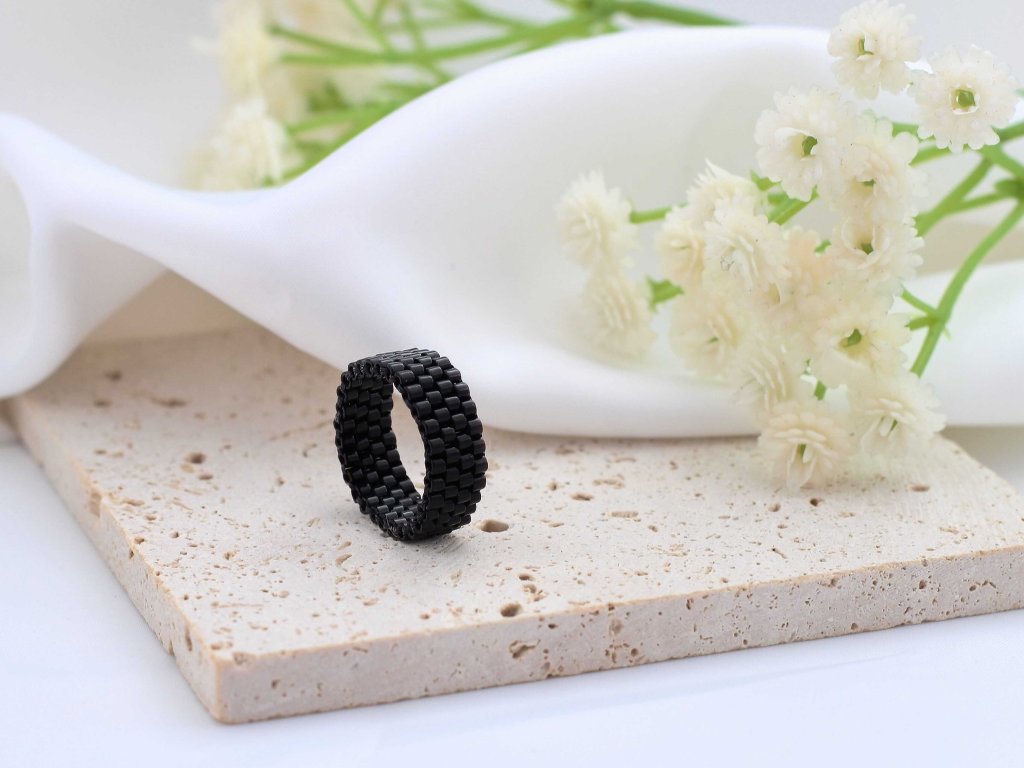 Prstýnek Černý třpyt působí na první pohled nenápadně, ale při dopadu světla se v něm probouzí decentní lesk, který odhalí jeho výjimečnost.